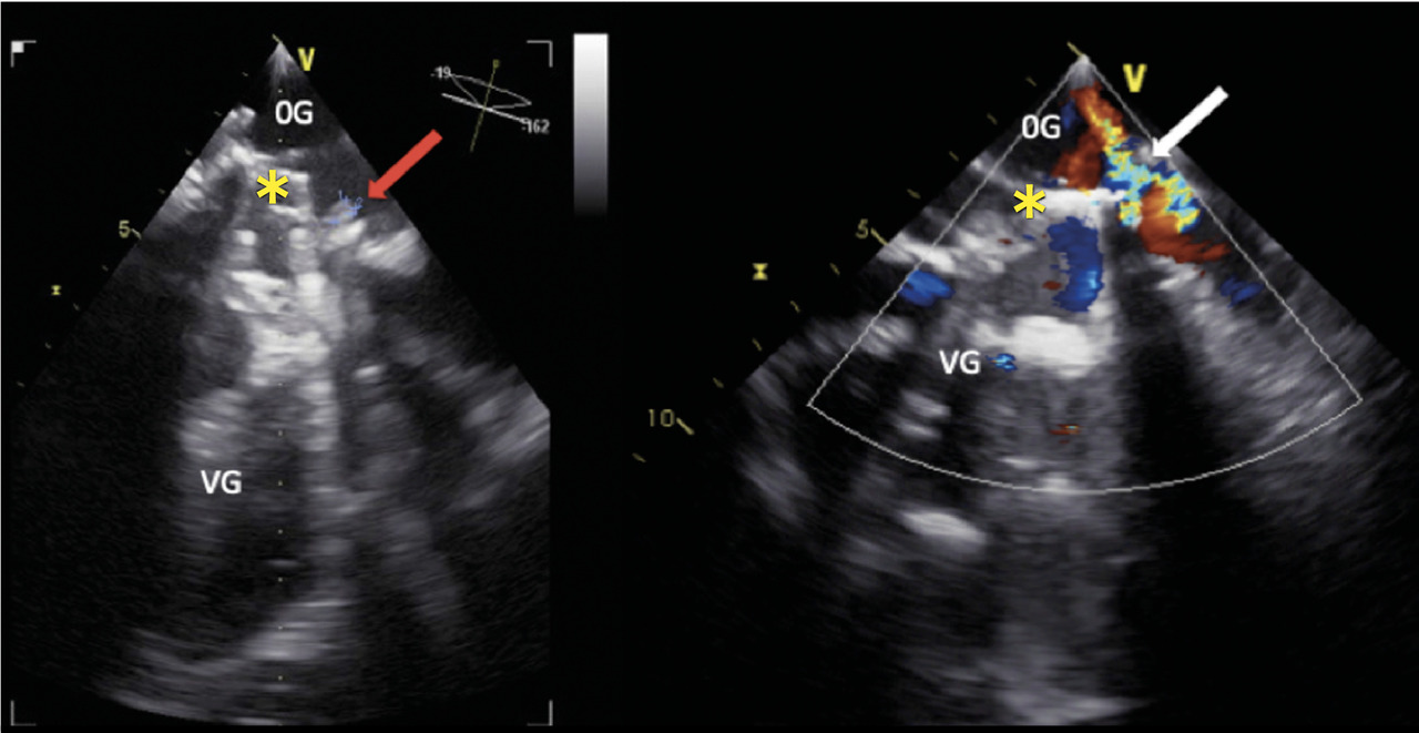 Les schizocytes, fragments circulants d’hématies, sont caractéristiques de l’hémolyse mécanique, telle que la microangiopathie thrombotique.1 Une hémolyse infraclinique chronique peut être présente en cas de valve prothétique de fonctionnement normal. Son incidence tend à diminuer du fait des améliorations de conception des prothèses.2 Un syndrome anémique ou des stigmates biologiques témoignent d’un dysfonctionnement ou plus fréquemment d’une fuite paraprothétique.3 L’hémolyse résulte de forces de cisaillement en lien avec la turbulence du flux.2 Une fuite paravalvulaire tardive traduit souvent une déhiscence de suture, favorisée par la calcification annulaire ou causée par une infection.3
