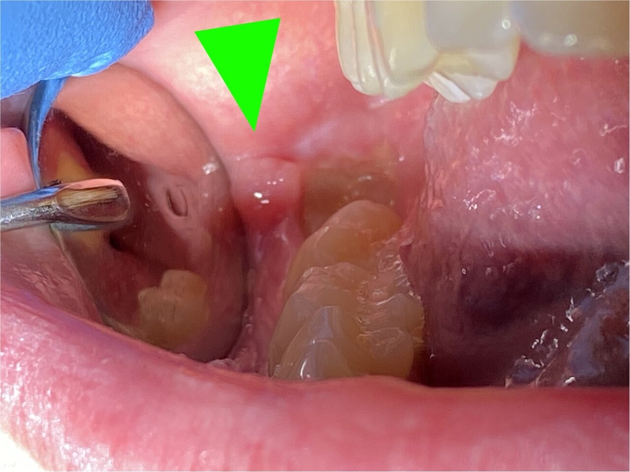 La péricoronarite (fig. 3) correspond à un accident d’éruption de la troisième molaire (dent de sagesse), survenant essentiellement chez le jeune adulte. La gencive forme un capuchon inflammatoire et douloureux venant recouvrir la dent, avec parfois un écoulement purulent à la pression.