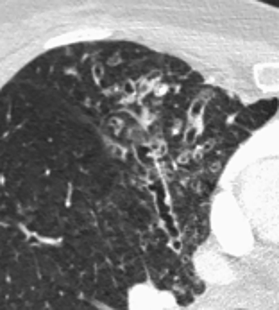 Une toux chronique (> 8 semaines), productive ou non, et des infections bronchopulmonaires récidivantes sont évocatrices. Peuvent y être associées dyspnée, fatigue, hémoptysies, douleurs thoraciques.3 L’auscultation peut être normale ou révéler des râles bronchiques ou sous-crépitants des deux bases. La radio suffit rarement à bien voir les parois bronchiques.