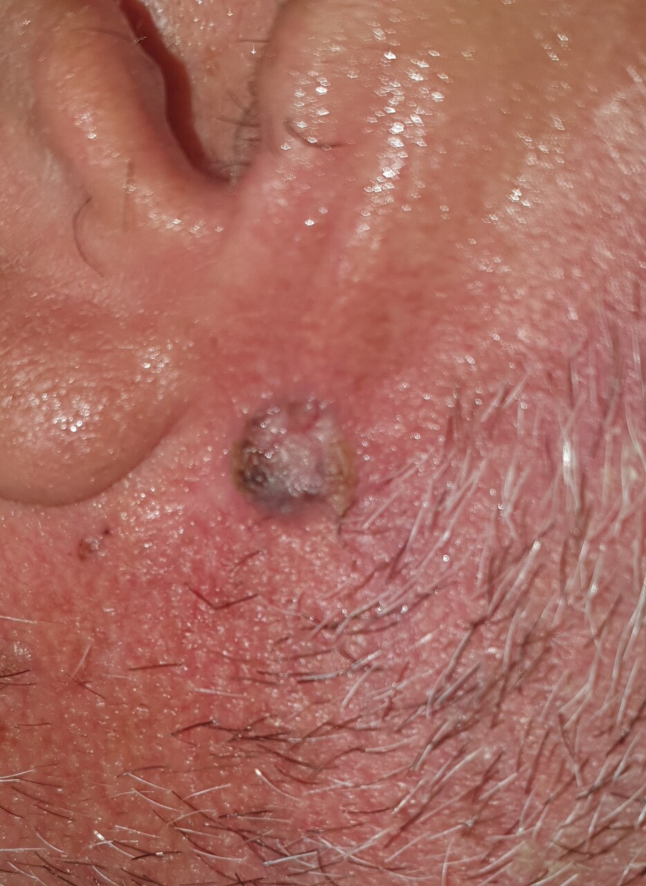 Le carcinome basocellulaire, pathologie cutanée maligne la plus fréquente, est une tumeur qui se développe aux dépens des kératinocytes de la couche basale de l’épiderme. Elle touche le plus souvent chez des personnes âgées de plus de 60 ans ayant eu une exposition solaire importante.