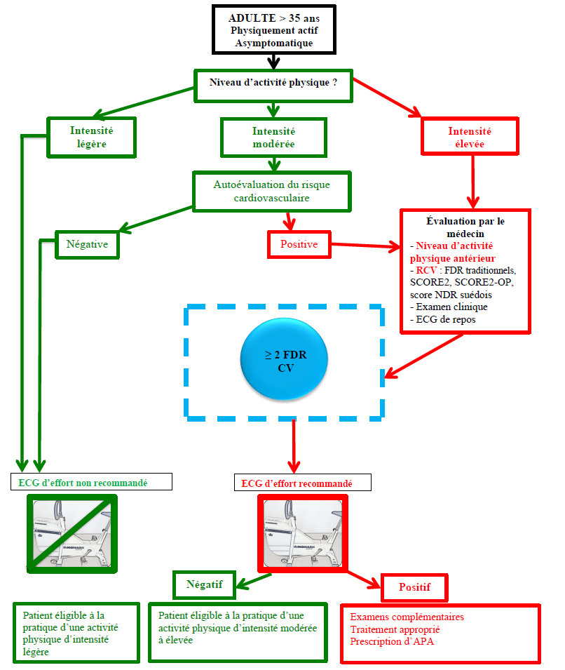 Un arbre décisionnel pour orienter les médecins dans le suivi des sportifs amateurs est représenté en figure.
