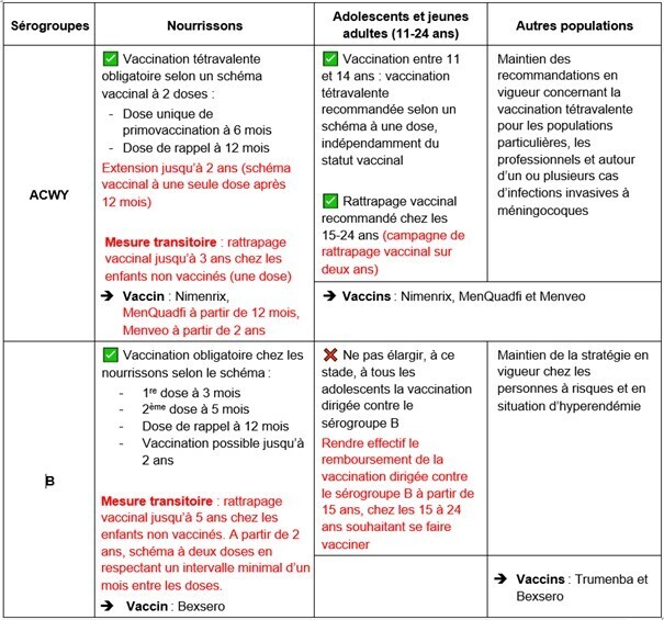 - Elle recommande de manière transitoire un rattrapage ciblant les enfants jusqu’à 3 ans n’ayant pas été vaccinés contre le sérogroupe ACWY.