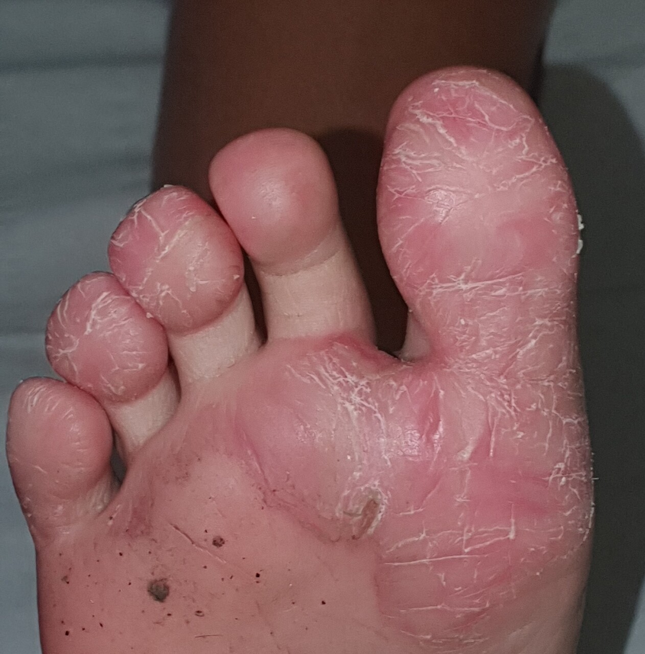 La dermatose plantaire juvénile, ou dermatitis plantaris sicca, est une pulpite sèche de l’avant-pied et concerne surtout les enfants âgés de 3 à 14 ans, avec un pic de fréquence entre 3 et 6 ans.