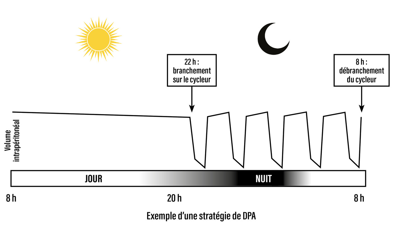 La dialyse péritonéale automatisée (DPA) est réalisée la nuit, pendant le sommeil du patient.