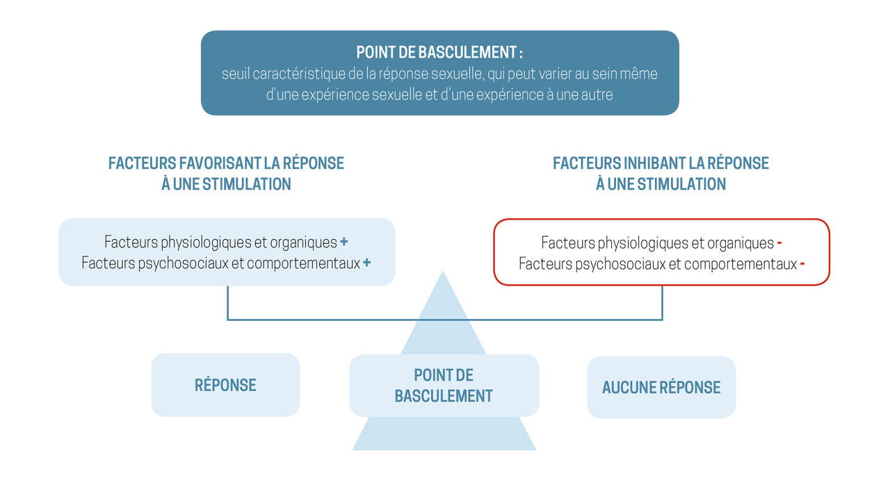 La classique caractérisation en psychogène/organique est aujourd’hui délaissée au profit de nouveaux modèles d’approche globale, dynamiques, interactifs et multifactoriels applicables à toutes les dysfonctions sexuelles, et permettant de mieux identifier les leviers thérapeutiques4 (