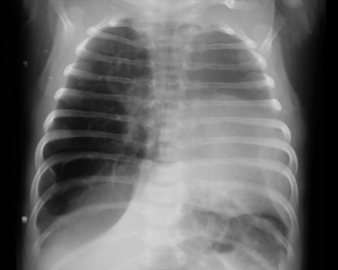 2. Bouhaouala MH, Charfi MR, Tlili K, et al. Giant lobar emphysema: The cause of compressive hemithoracic opacity in a newborn infant. Rev Mal Respir 1994;11(1):57-9.