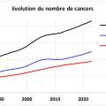 Le nombre de cas de cancer augmente régulièrement (fig. 1), mais cette augmentation s’explique essentiellement par la démographie. Il est donc nécessaire de faire deux corrections :