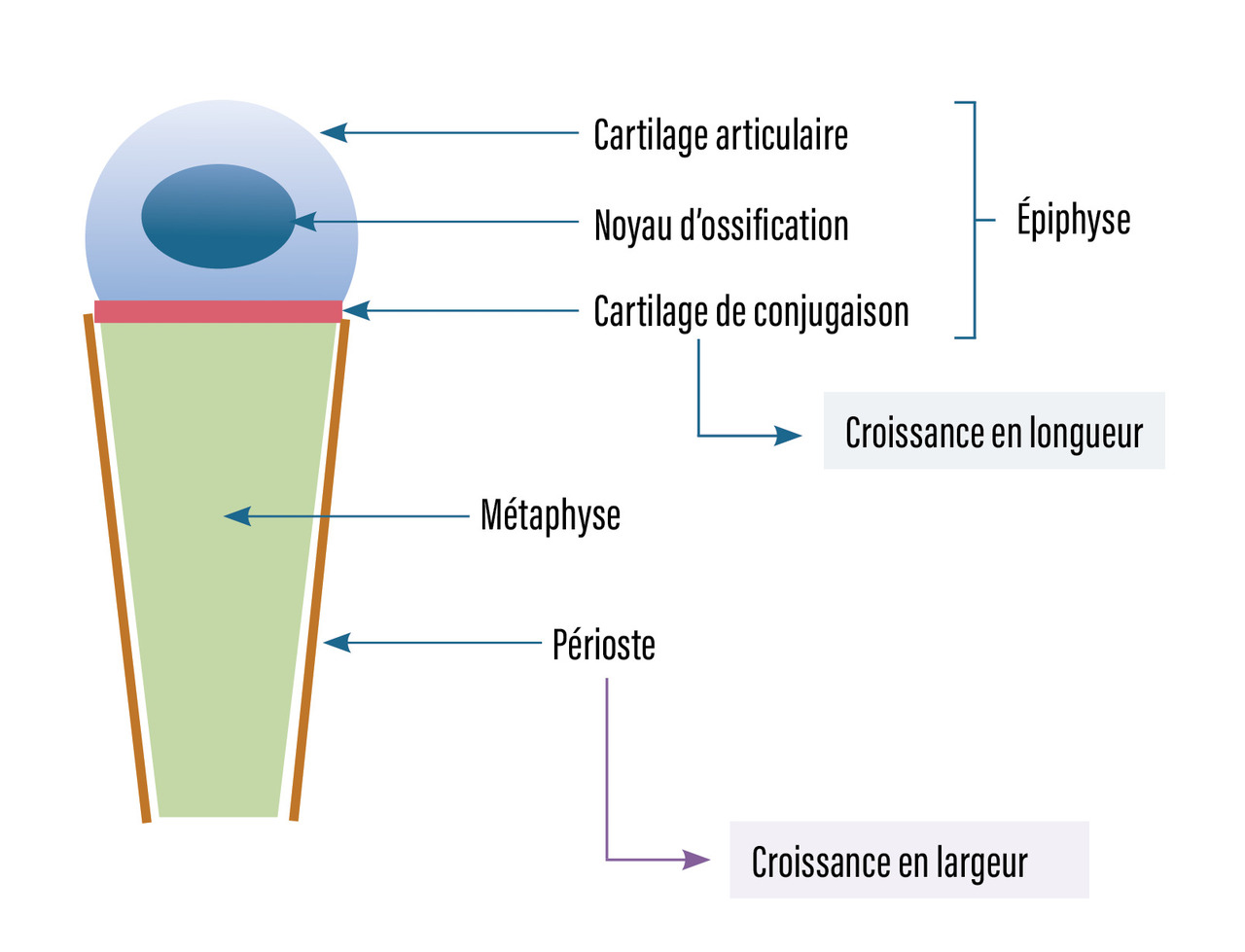 Le cartilage de croissance est présent aux deux extrémités des os longs. Il est mécaniquement faible, peu résistant aux forces de traction axiale et de torsion. Beaucoup de fractures de l’enfant passent donc par ce cartilage de croissance.