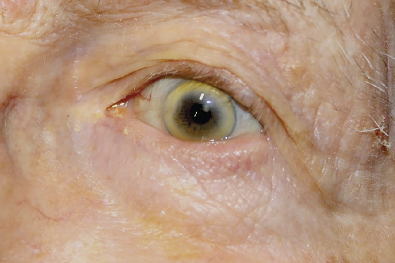 Louis, 87 ans, consulte en compagnie de sa fille : elle est très inquiète car son père a un arc de cercle de couleur jaune-blanc autour de l’iris.
