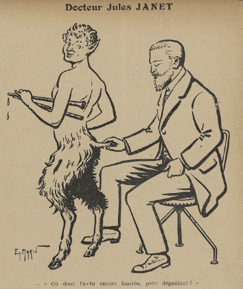 Jules Janet, avant de se consacrer pleinement à l’urologie, s’est provisoirement joint aux recherches de son frère aîné, le fameux Dr Pierre Marie Félix Janet (1859 - 1947) [fig. 2] – célèbre psychiatre et psychologue (psychologie dite dynamique) à l’aube du siècle dernier, devenu plus tard un hypnothérapeute de renom – 9 dans les domaines de l’hystérie, de l’hypnotisme et du somnambulisme. Il a même osé, en 1888, se différencier de l’approche de Pierre sur la théorie de la double personnalité.9,10 Malgré ces divergences, en dehors de la sphère académique, les relations affectives entre les deux frères sont restées intimes tout au long de leur vie et jusqu’à la mort de Jules.9 Versé au début de sa carrière dans les deux spécialités médicales, Jules Janet a travaillé d’une manière innovante dans le domaine de la psycho-physiopathologie urodynamique en étudiant les causes psychogènes des désordres mictionnels, au confluent de l’urologie et de la psychiatrie.11,12 Ses conclusions ont été publiées, en 1890, dans un ouvrage titré Troubles psychopathiques de la miction, sujet qui avait été par ailleurs le sujet de sa thèse.2,11 Dans celle-ci, le jeune Dr Jules Janet se sert du terme « faux urinaires » inventé par son maître, le Pr Guyon, afin de qualifier les différents patients atteints de troubles variés et hétéroclites de la miction dont la cause ne se situe néanmoins ni au niveau de l’urètre ni au niveau de de la vessie.11