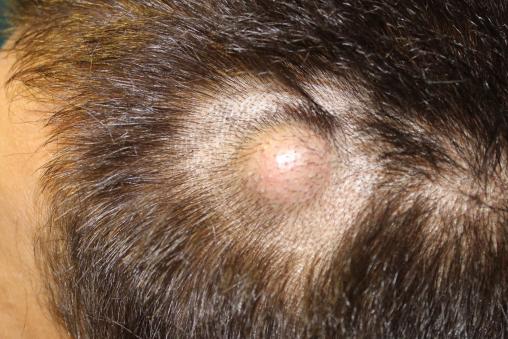 Jean-François, 39 ans, consulte pour une tuméfaction isolée du cuir chevelu. Apparue il y a quelques mois, elle ne cesse d’augmenter de volume.