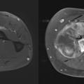 Concernant les tumeurs des membres, on distingue premièrement les lésions graisseuses, qui sont majoritairement représentées par les lipomes bénins. Ces lésions ne nécessitent pas d’examen complémentaire si elles ont une taille inférieure à 5 cm en situation profonde (intramusculaire) ou 10 cm en situation superficielle (dans la graisse sous-cutanée au-dessus des fascias musculaires). Au-dessus de cette limite de taille, il est recommandé de réaliser une imagerie par résonance magnétique (IRM), à la recherche de signes d’atypie. L’objectif est de reconnaître les potentiels liposarcomes et les tumeurs graisseuses atypiques (liposarcomes bien différenciés). Dans les autres cas de figure, c’est-à-dire pour les tumeurs non graisseuses, ou les pseudotumeurs, ou pour les tumeurs osseuses qui ne sont pas aisément caractérisables, le recours à l’IRM doit être systématique (figure). Certaines lésions restent d’orientation difficile, et il est de rigueur de prôner la prudence en envoyant le patient dans un centre expert et/ou en organisant une surveillance radioclinique. Pour inciter à la prudence, on évoque volontiers les cas souvent décrits des lésions sarcomateuses prises par erreur pour des hématomes et les radiographies normales des sarcomes osseux de l’enfant au stade précoce. Une évolution clinique péjorative doit être systématiquement accompagnée d’une investigation radiologique par IRM.