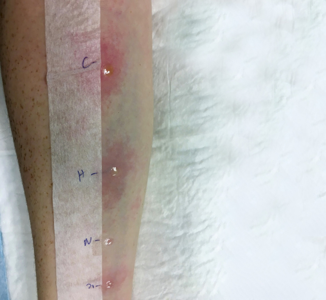 Aucun examen n’est nécessaire pour porter le diagnostic initial, et ceux-ci ne doivent pas retarder le traitement. Le dosage de l’histamine plasmatique et de la tryptase sérique peut être utile pour apporter la preuve d’une dégranulation des basophiles et des mastocytes lors d’une réaction d’hypersensibilité. La sensibilité des tests est variable en fonction de l’horaire du prélèvement et de la sévérité de la réaction. La négativité des tests ne doit donc pas faire exclure le diagnostic d’anaphylaxie.[20] Si l’on considère que la valeur de base pour un même individu est relativement stable, une dégranulation mastocytaire est confirmée lorsque la tryptase au pic est égale ou supérieure à 120 % de la tryptase basale + 2 µg/L.