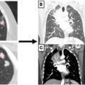 Lorsqu’ils sont détectés par imagerie, les nodules de moins de 6 mm ne sont pas suivis chez les patients à bas risque (non-fumeurs). Pour les nodules mesurant entre 6 et 8 mm, une TDM de contrôle est réalisée à six-douze mois. Enfin, une TEP-TDM au FDG (ou un scanner ou une biopsie) est indiquée pour les nodules pulmonaires solitaires solides de plus de 8 mm de diamètre (selon les guidelines de la Fleischner Society) avec de bonnes performances pour différencier les lésions bénignes et malignes.12 Un exemple de nodules pulmonaires solitaires solides visualisés sur la TDM thoracique et une TEP-TDM au FDG de suivi est présenté en figure 3. La détection peut cependant être limitée par des faux positifs et négatifs dus à des facteurs techniques ainsi qu’aux éventuelles infections ou inflammations intercurrentes.