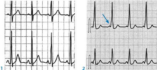 L’examen clinique est normal, ainsi que l’ECG initial (fig. 1 ) ; le bilan (échographie cardiaque transthoracique, épreuve d’effort et holter ECG sur 24 heures) aussi.