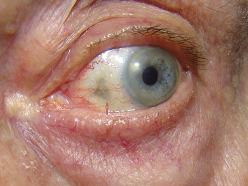 Yakoubi S, Touzani F, Knani L, et al. Plaque sclérale sénile associée à une sclérite chez un patient atteint de polyarthrite rhumatoïde. J Fr Ophtalmol 2012;35:625e1-3.