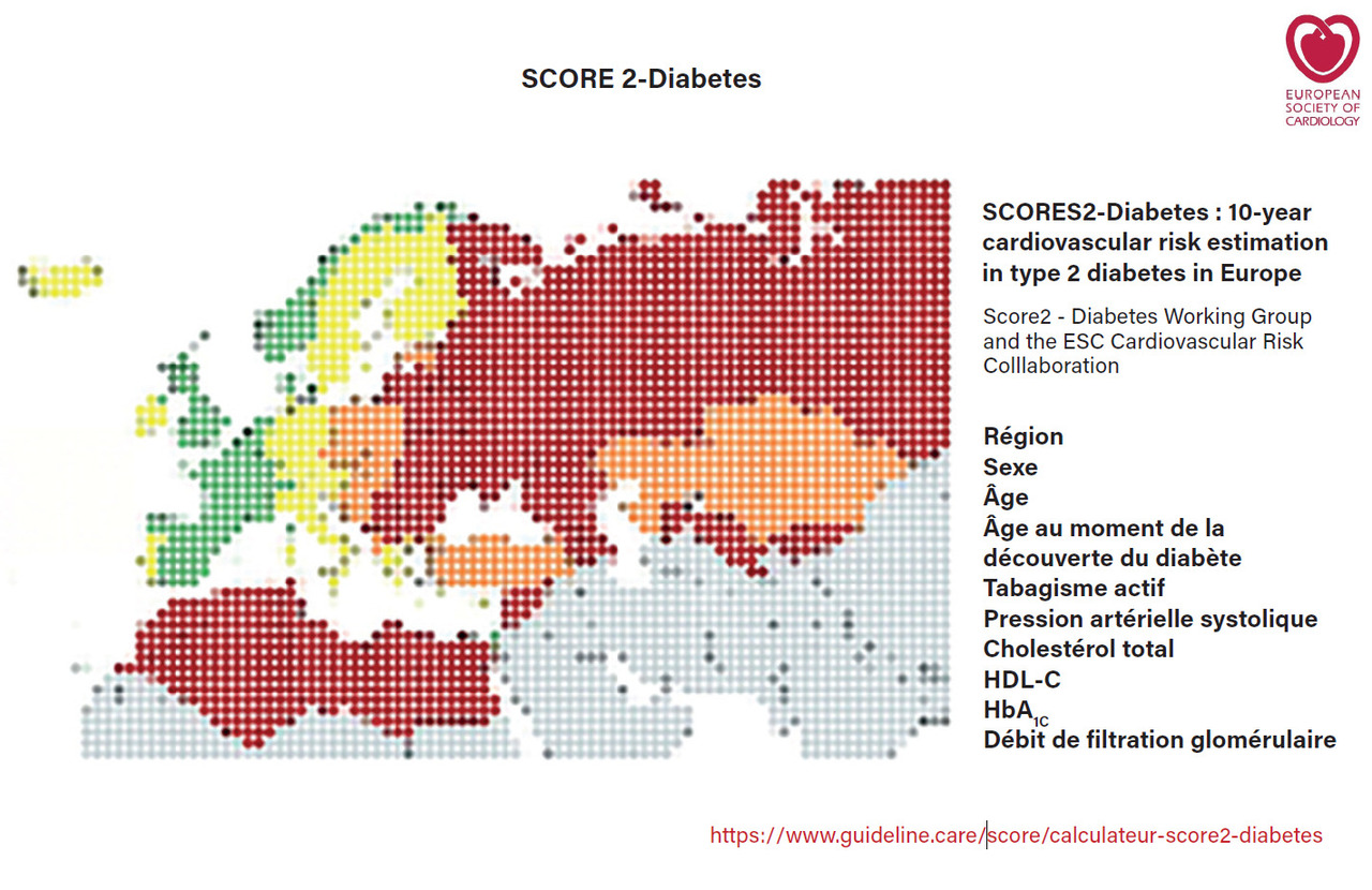 SCORE 2 - Diabètes : estimation du risque cardiovasculaire à dix ans