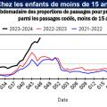 La surveillance syndromique Sursaud mise en place par Santé publique France fait état d’une hausse, en semaine 46 (13 au 19 novembre) des passages aux urgences et des actes SOS Médecins chez les < 15 ans pour les pathologies respiratoires : + 30 % environ pour pneumopathies, bronchites et autres pathologies ORL, ainsi que pour les bronchiolites chez les < 2 ans, et des hausses de 24 % et 44 % pour grippe et Covid respectivement, par rapport à la semaine précédente.