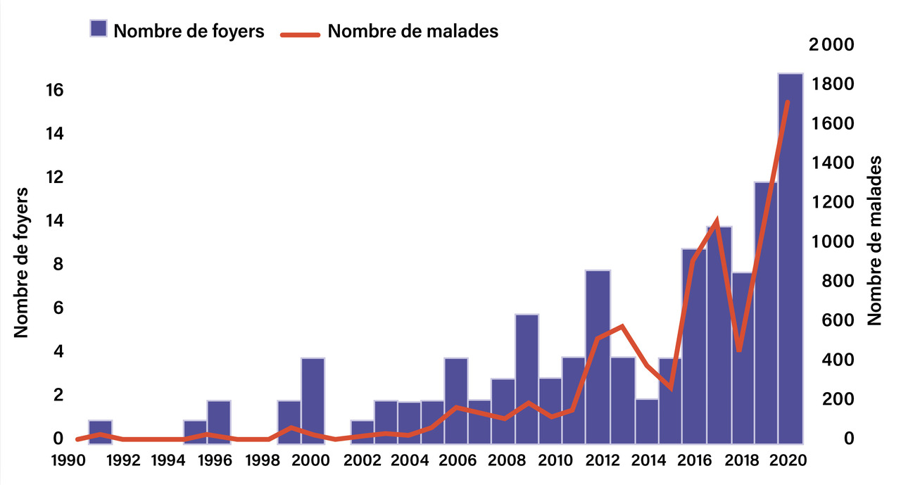 - l’absence d’un système d’alerte permettant, comme aux États-Unis, de collecter les cas sporadiques ;