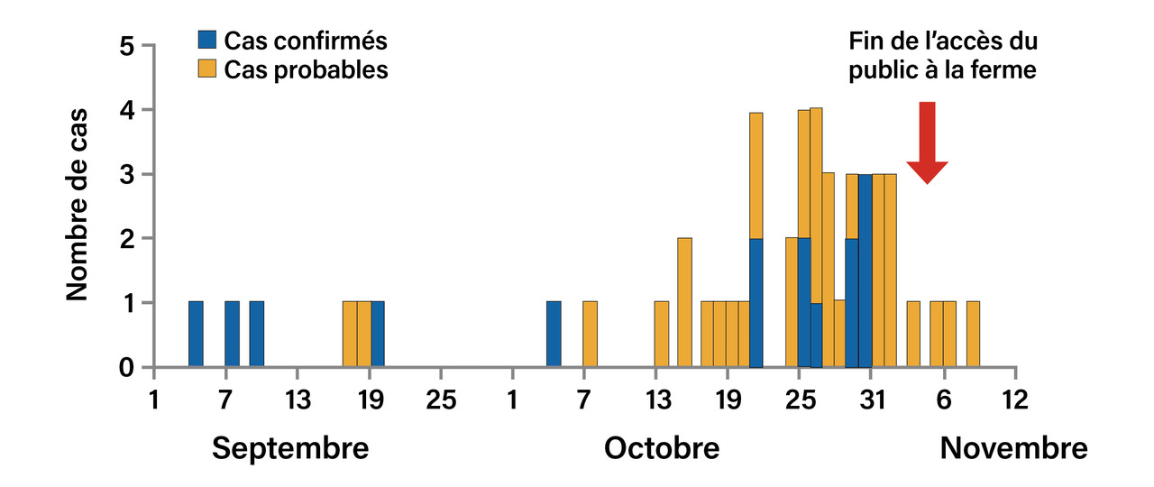 - les « petting zoos » (ou mini-fermes) qui, en l’absence de mesures de « biosécurité », favorisent les contacts étroits avec les animaux ;