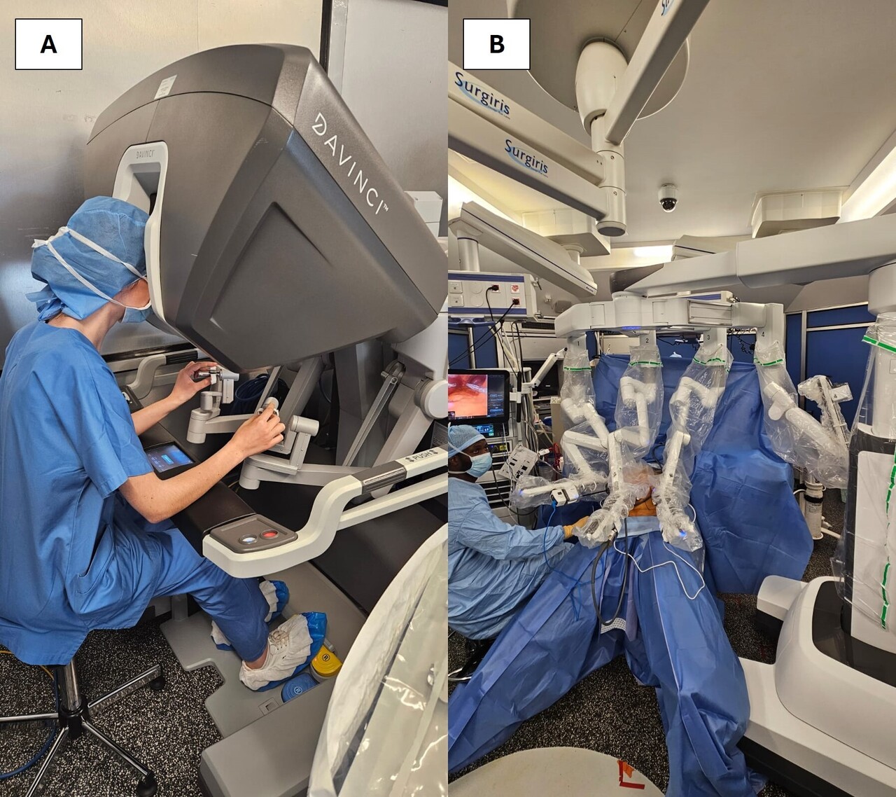En outre, les gestes chirurgicaux, réalisés à l’aide des joysticks depuis la console, possèdent un module de filtration permettant la suppression du tremblement physiologique. Plusieurs instruments sont également capables de mouvements articulés complexes avec sept degrés de liberté, non réalisables par le poignet humain, facilitant ainsi les sutures ou dissections dans des endroits confinés. Enfin, l’opérateur principal étant assis, la chirurgie robotique offre une ergonomie améliorée, réduisant la fatigue physique et les tensions pour les chirurgiens lors d’interventions prolongées.
