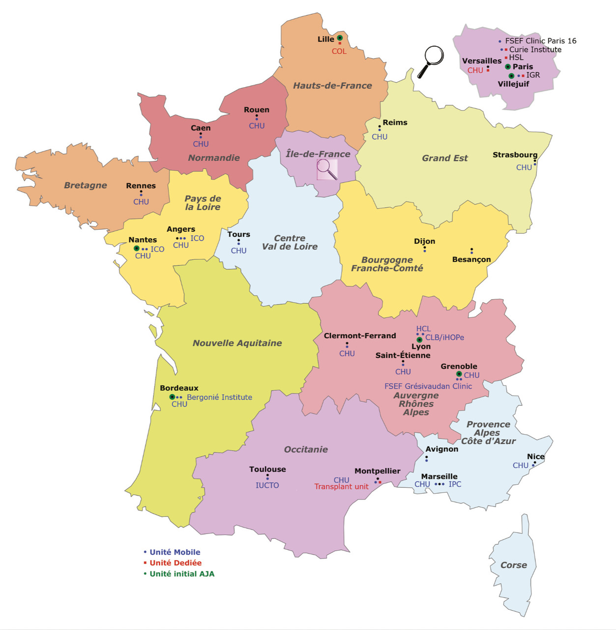Après une première phase d’expérimentation financée par l’INCa entre 2012 et 2015 et de mise en place de huit équipes régionales dédiées à l’accompagnement des AJA, 30 équipes membres sont aujourd’hui réparties sur le territoire national sous l’égide de GO-AJA (figure).