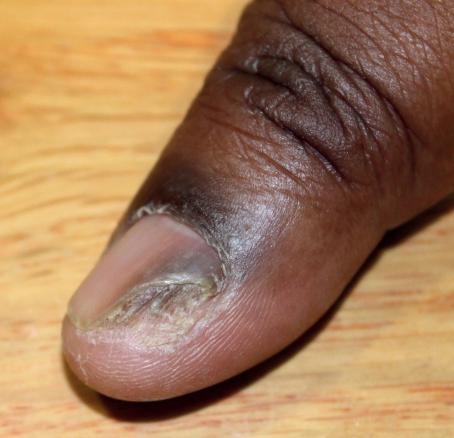 Désiré, 28 ans, Antillais, consulte pour une lésion unguéale qu’il a depuis plus de 1 an.