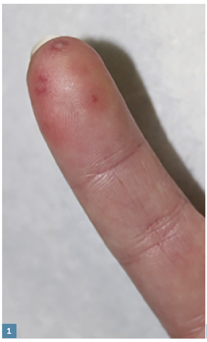 Léo, 29 ans, consulte en urgence pour des lésions érythémateuses apparues il y a quelques jours aux extrémités de sa main droite, surtout au niveau du dernier doigt. Étant donné qu’il travaille dans un Ehpad, il craint d’avoir contracté le Covid-19. Par ailleurs, il est harassé car durant le confinement il a construit un hangar pour ses volatiles.