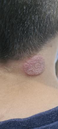 Yanis consulte avec sa mère pour deux lésions érythémato-squameuses circulaires apparues depuis quinze jours, au niveau de la tempe et de la nuque (
