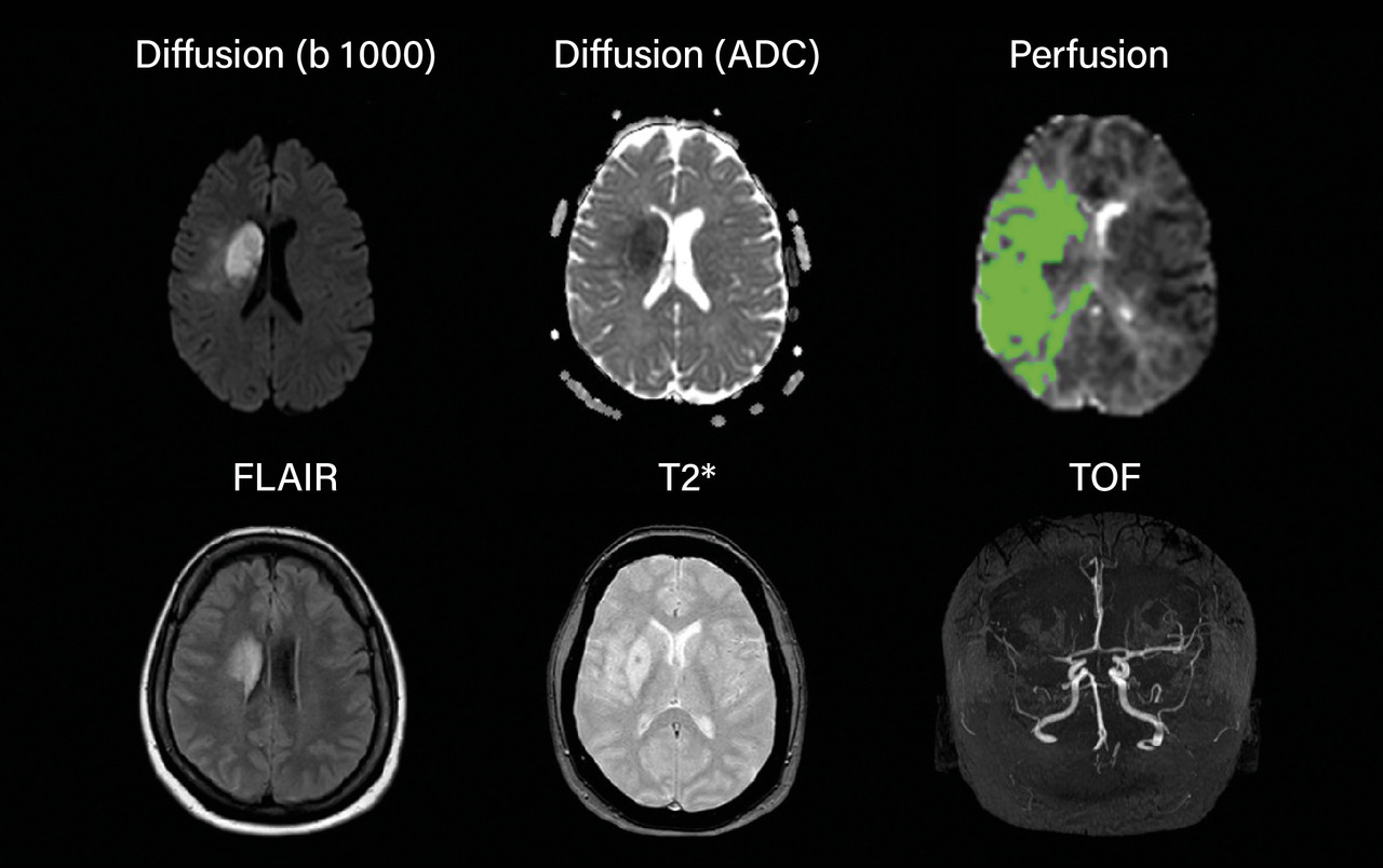 La séquence de perfusion peut être utile pour visualiser la zone de pénombre ischémique, mais elle n’est pas utilisée en routine car elle allonge la durée de l’examen dans un contexte d’urgence. Elle n’est réellement utile que chez les patients vus plus de quatre heures trente après l’apparition des symptômes, ou pour les diagnostics différentiels de type trouble neurologique fonctionnel ou migraine avec aura.