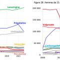 Malgré ces recommandations et une nette diminution des prescriptions (fig. 2), plus de 200 grossesses ont été exposées au valproate de sodium en 2022 (les données de 2023 ne sont pas encore disponibles), et le médicament a été prescrit à 33 000 femmes de 15 à 49 ans, dont plus de 7 000 initiations du traitement. Ceci laisse planer un doute sur la façon dont ces recommandations sont appliquées par les prescripteurs.