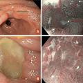 Au contraire, l’adénocarcinome ulcériforme peut être plus étendu (fig. 2C, 2D ), à bords renflés en massue, de forme irrégulière, déchiquetée, avec une ligne de démarcation nette entre la muqueuse irrégulière au centre de l’ulcère et la muqueuse périulcéreuse plus inflammatoire. Les adénocarcinomes sont généralement associés à des lésions prénéoplasiques, comme la métaplasie intestinale ou la dysplasie.