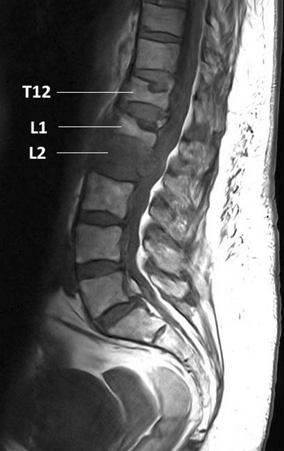 Votre examen clinique retrouve une douleur élective à la percussion de l’épineuse de L2. Il n’y a pas de symptôme associé, notamment pas de déficit sensitif ou moteur. L’auscultation cardiopulmonaire ainsi que la palpation abdominale sont normales. Vous suspectez une fracture vertébrale.