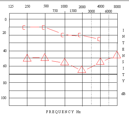 Pour compléter le bilan vous réalisez un audiogramme. L’oreille gauche est normale. Voici pour l’oreille droite.