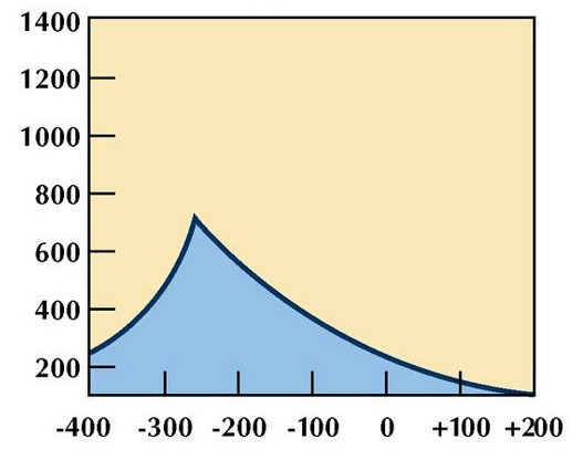 Vous constatez donc une poche de rétraction de la pars flaccida. Vous décidez de l’exploration avec un tympanogramme. Vous retrouvez le tympanogramme suivant.