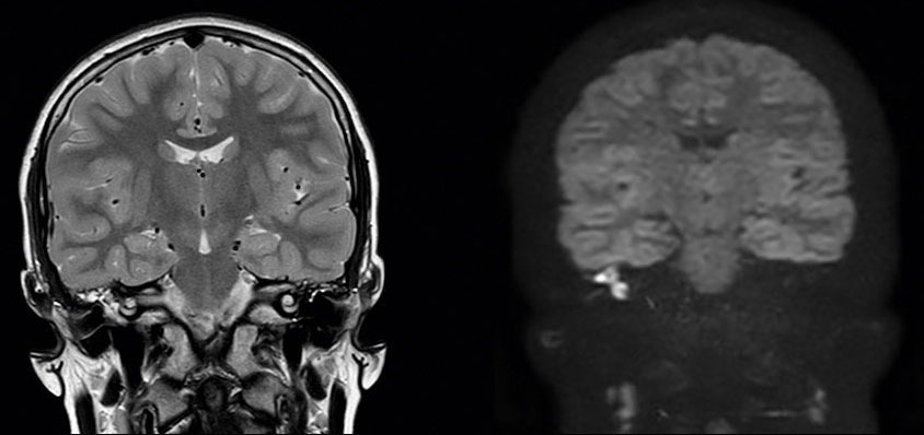 Avec la séquence de diffusion à droite, qui est pathognomonique du cholestéatome.