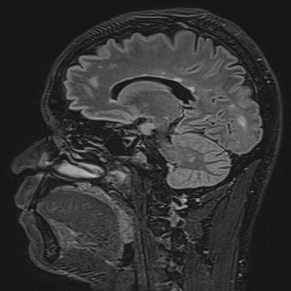 – diplopie binoculaire sans paralysie oculomotrice. Pas d’autre anomalie à l’examen des paires crâniennes.