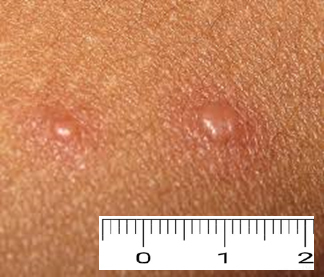 Lésion cutanée remplie de liquide clair < 5 mm.