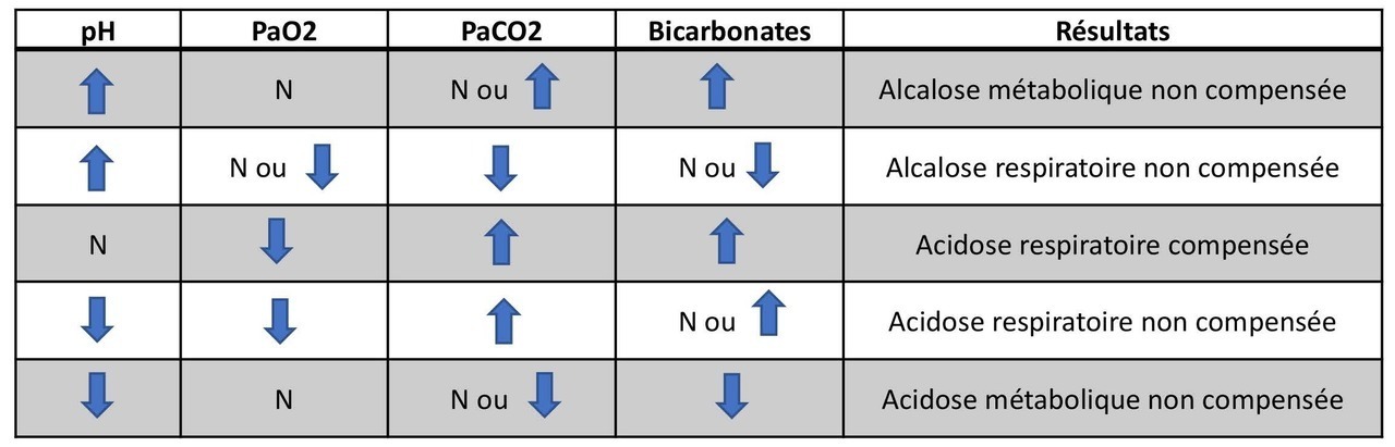 Ce n’est pas une alcalose métabolique, car les bicarbonates sont dans la norme basse (norme 22-26 mmol/L).