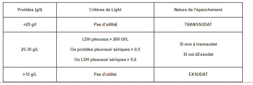 Question 11 - Interprétez les résultats de la ponction pleurale :