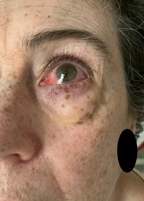 Oui, mais il n’est pas possible de distinguer sur la photo une épisclérite d’une sclérite. Ces deux pathologies peuvent se rencontrer au cours du lupus. Cette patiente est à adresser en ophtalmologie rapidement.