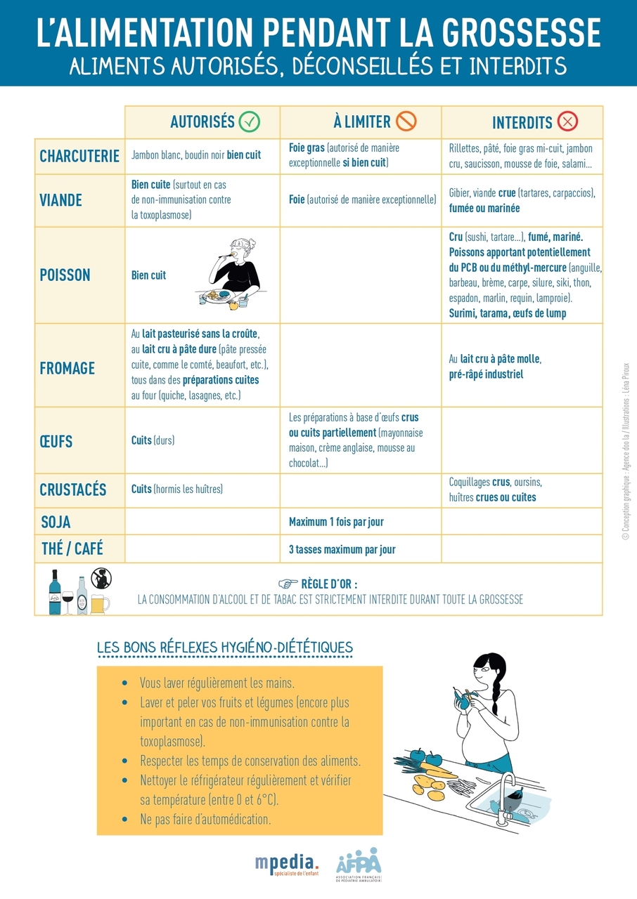 D’après :Grossesse : quels aliments sont autorisés ? Mpedia 19 décembre 2024.